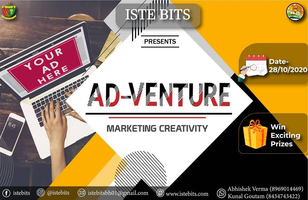 ISTE brings to you a riveting event with the theme of marketing – “AD-VENTURE” which is a poster/gif designing competition where each participant is provided with 20 Brand names and they get a chance to showcase their creativity and innovation in designing, advertising, and marketing field by making posters for their chosen brands. The poster/gif design must represent a definite image of the brand ingeniously. AD-VENTURE gives a massive opportunity to talented and competent designers to bring out their uniqueness and ingenuity. This event emphasizes the need to enhance designing skills as well as develop marketing techniques in this tremendous era of business and entrepreneurship.